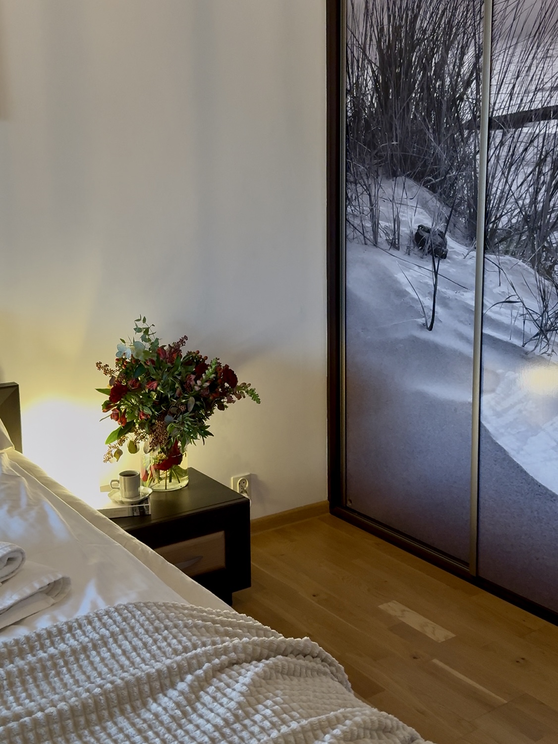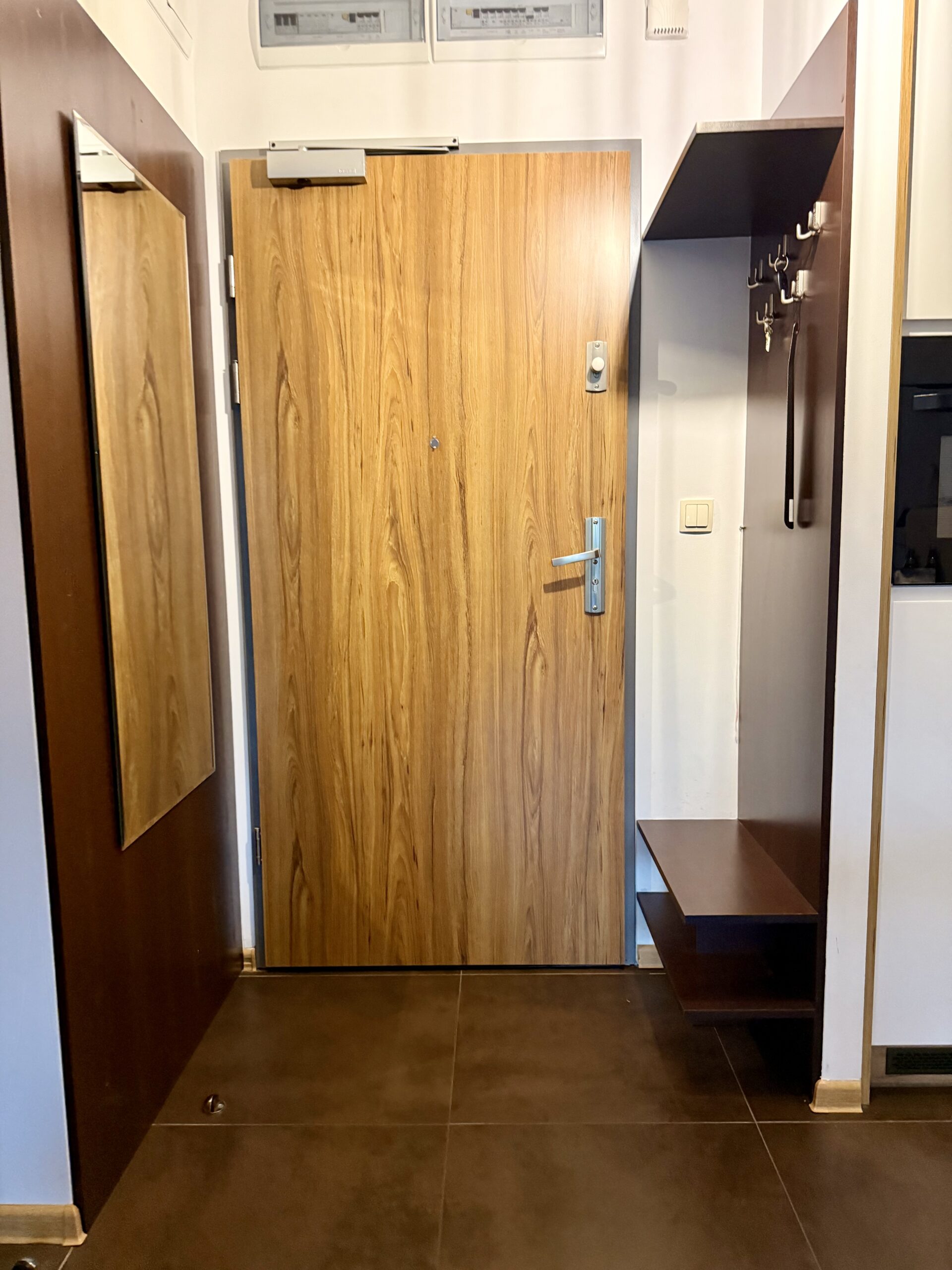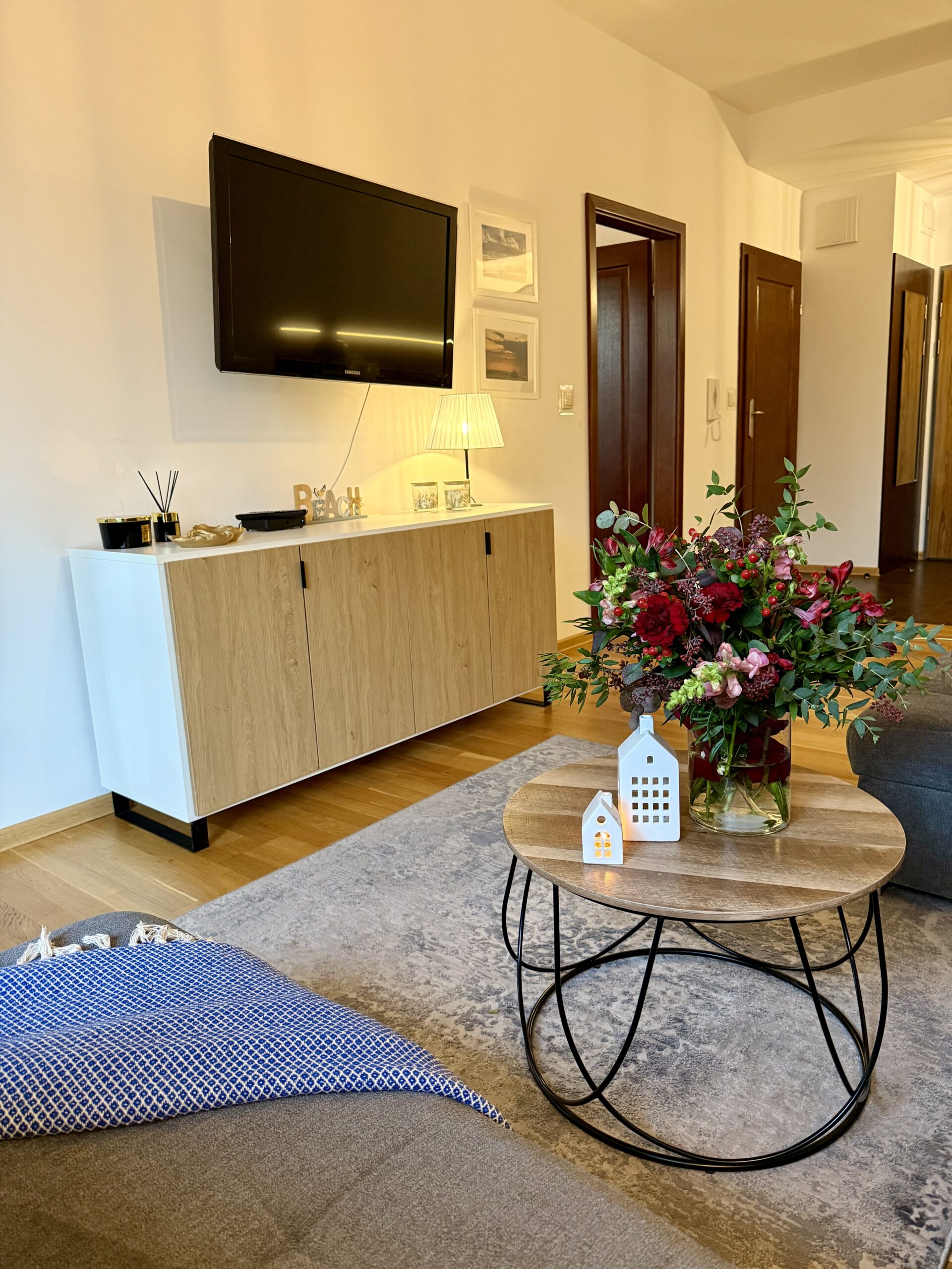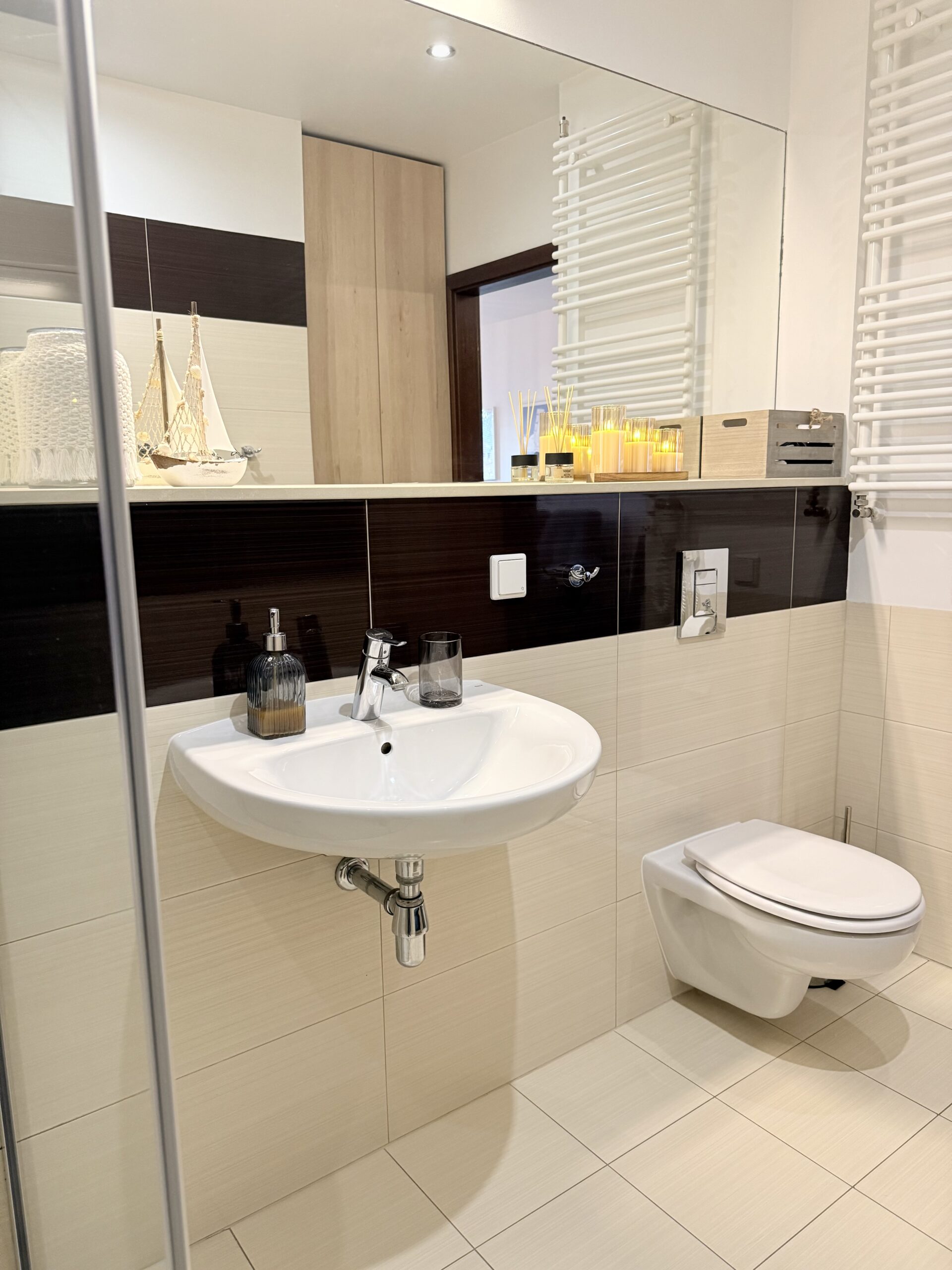 Apartament dysponuje również dużą, jasną łazienką z pralką, co jest szczególnie wygodne podczas dłuższych pobytów.