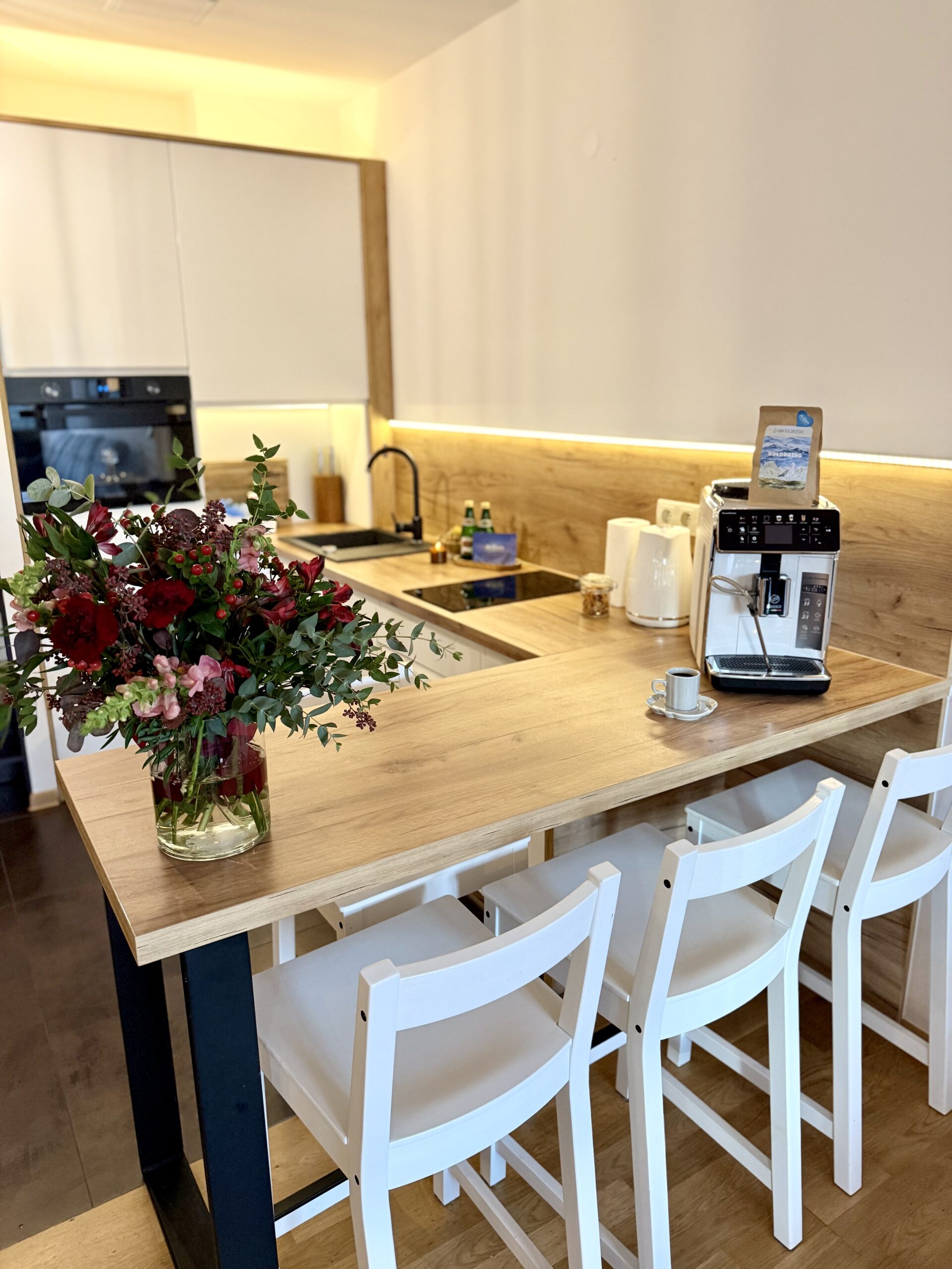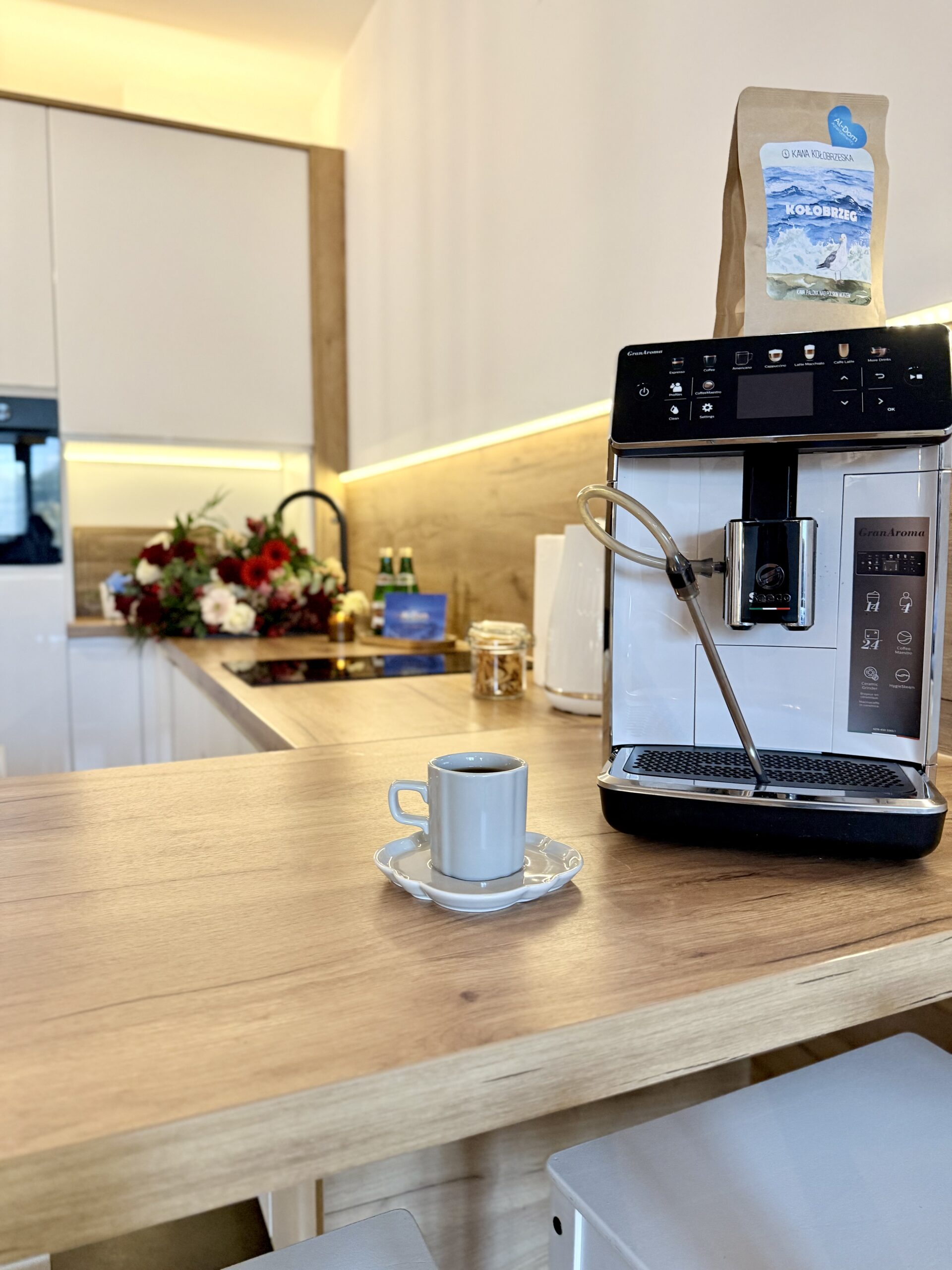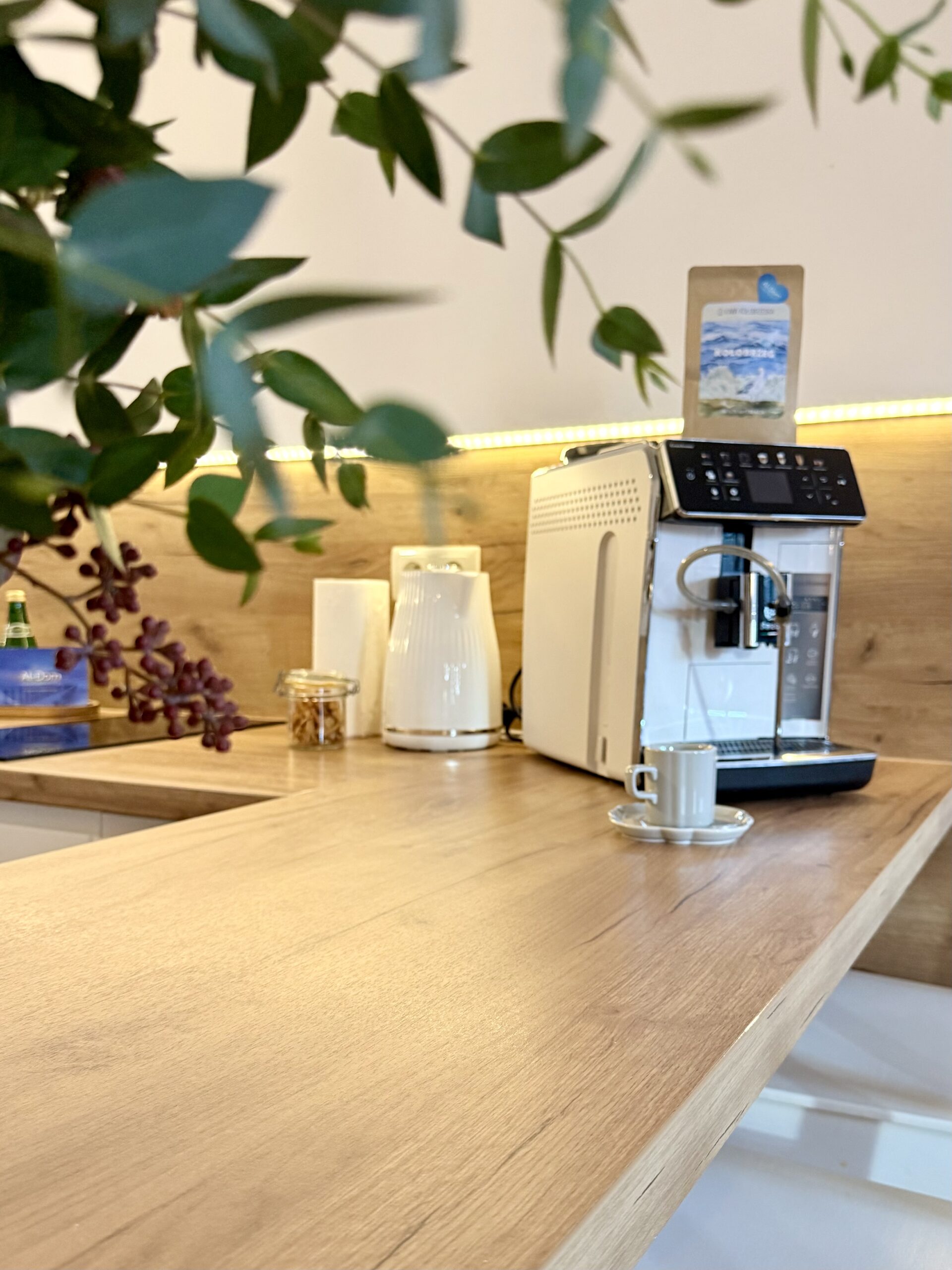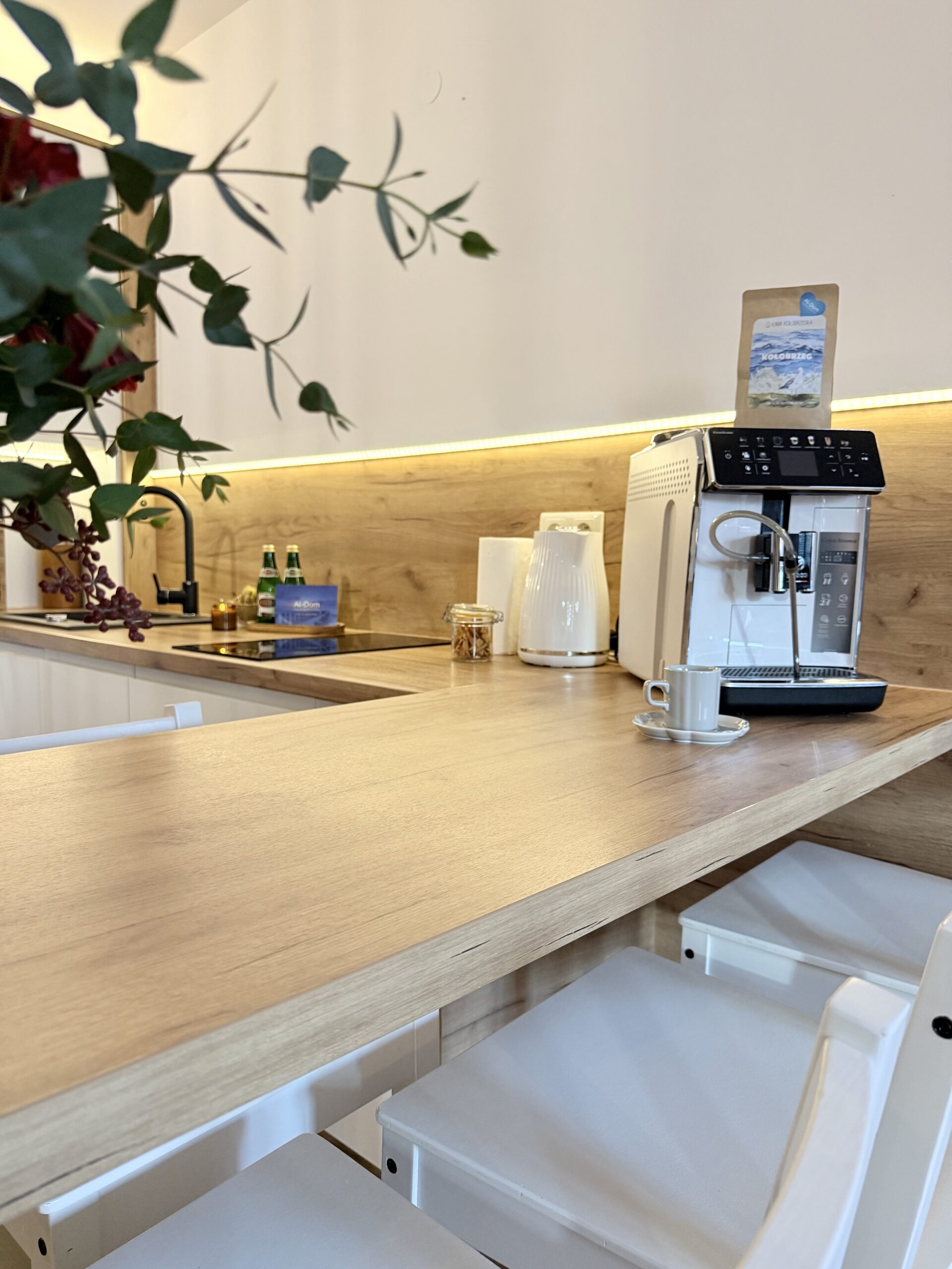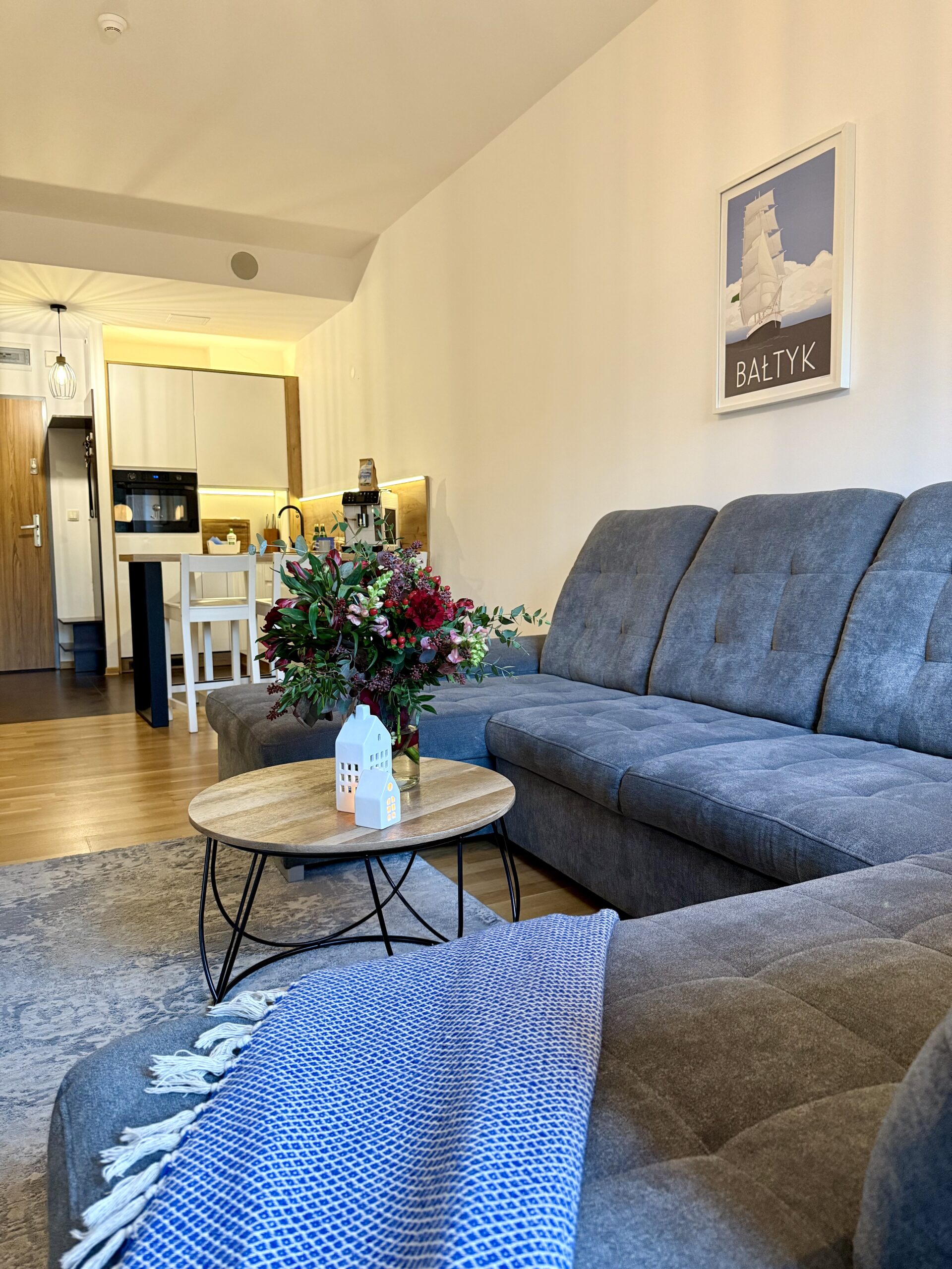 W apartamencie znajduje się przytulna sypialnia, która oferuje komfortowy sen, oraz duży aneks kuchenny, który jest doskonale wyposażony. W aneksie znajduje się przestronna kanapa, która może służyć jako dodatkowe miejsce do spania, oraz telewizor, idealny do relaksu po dniu spędzonym na plaży. Kuchnia jest w pełni wyposażona, w tym w ekspres do kawy, zmywarkę oraz wszystkie niezbędne naczynia, co sprawia, że przygotowywanie posiłków staje się przyjemnością.
