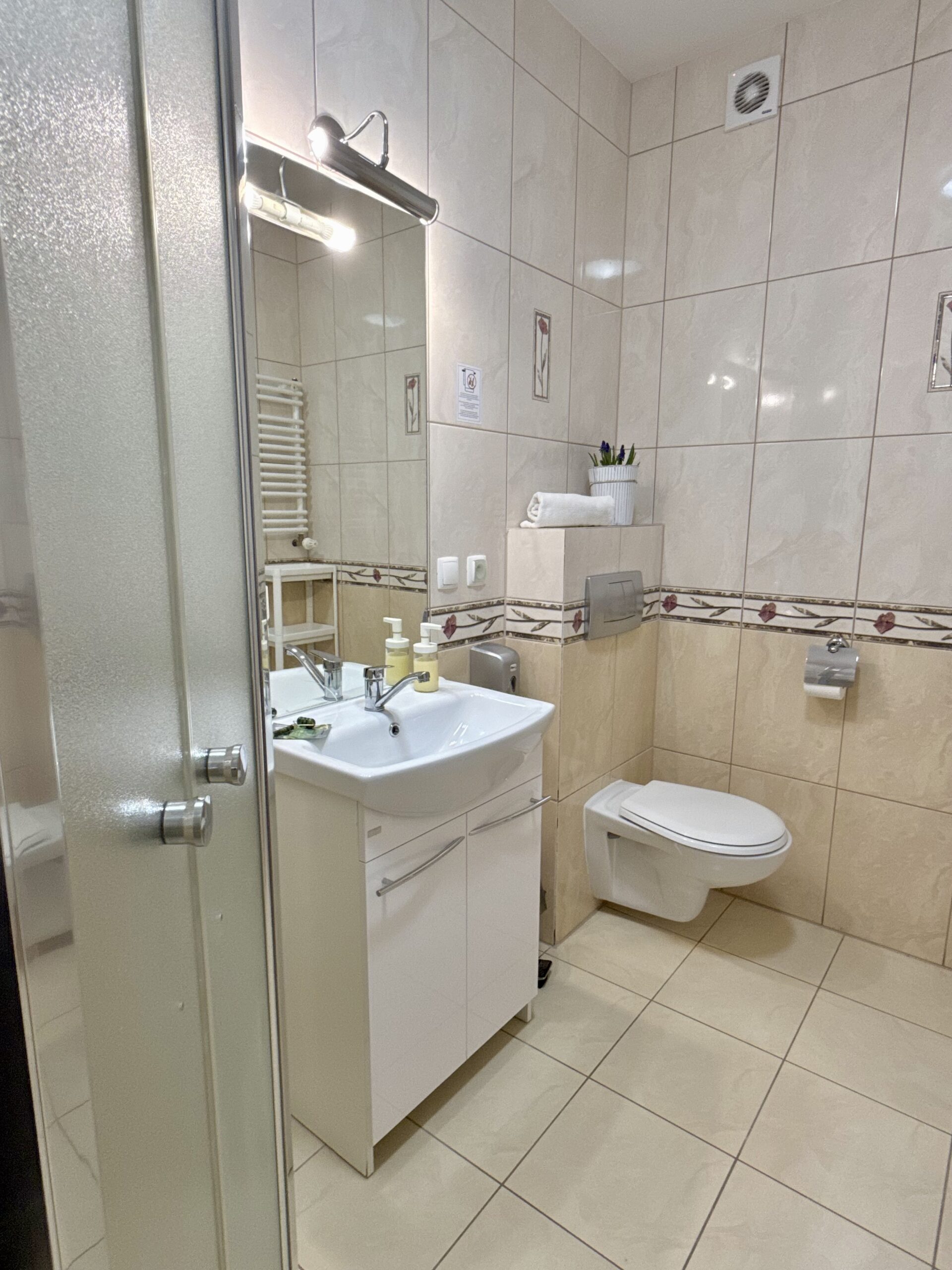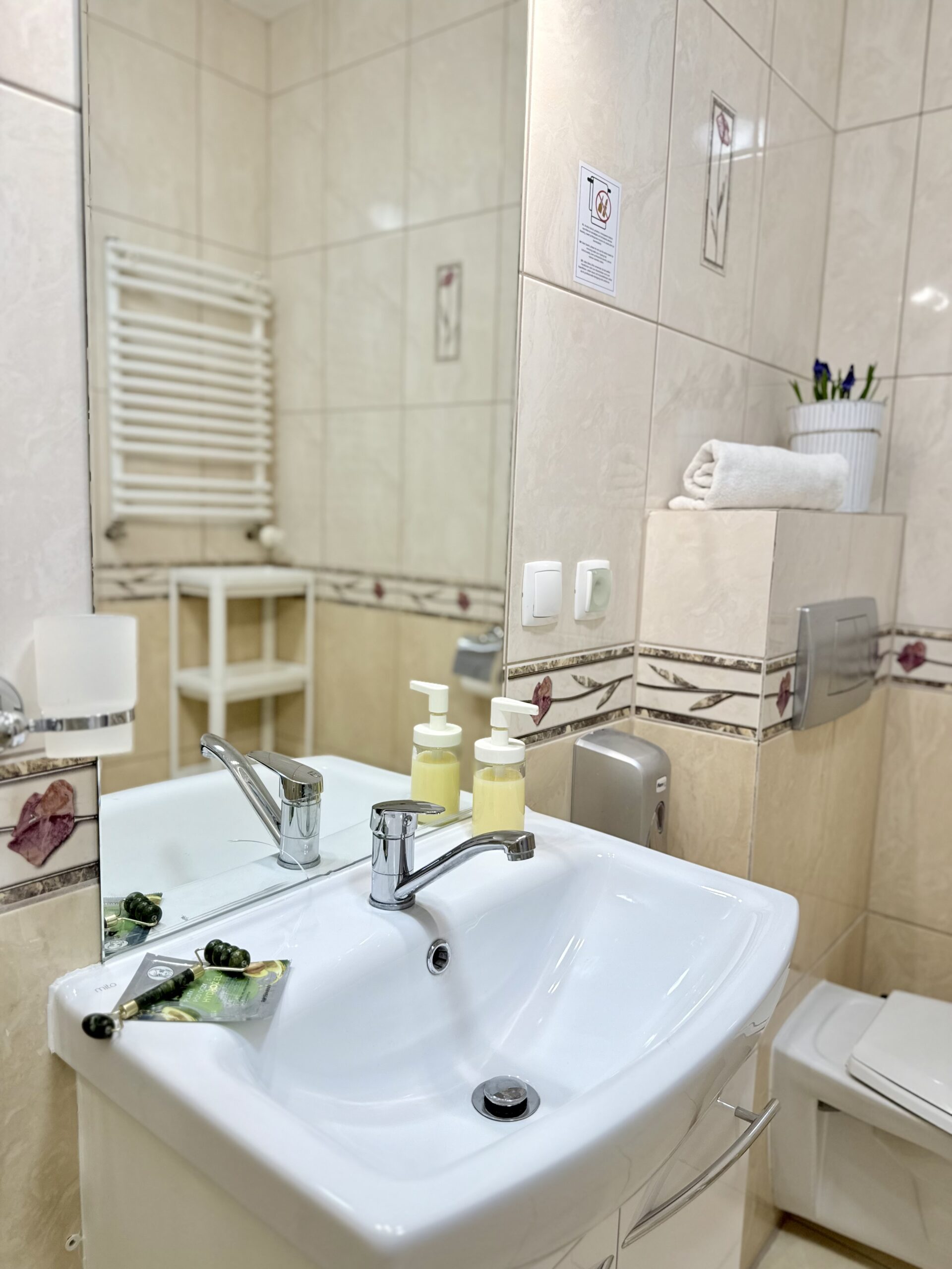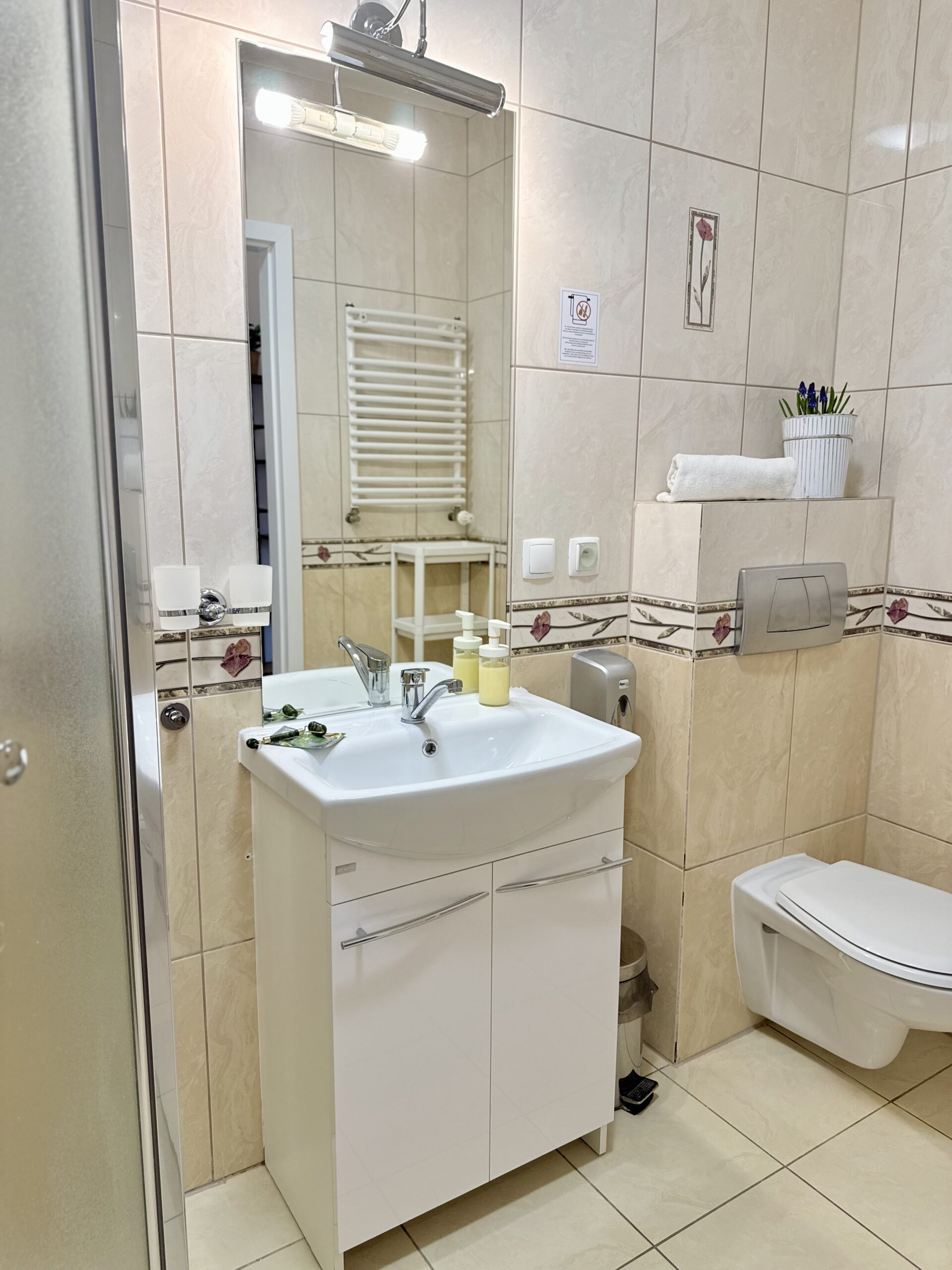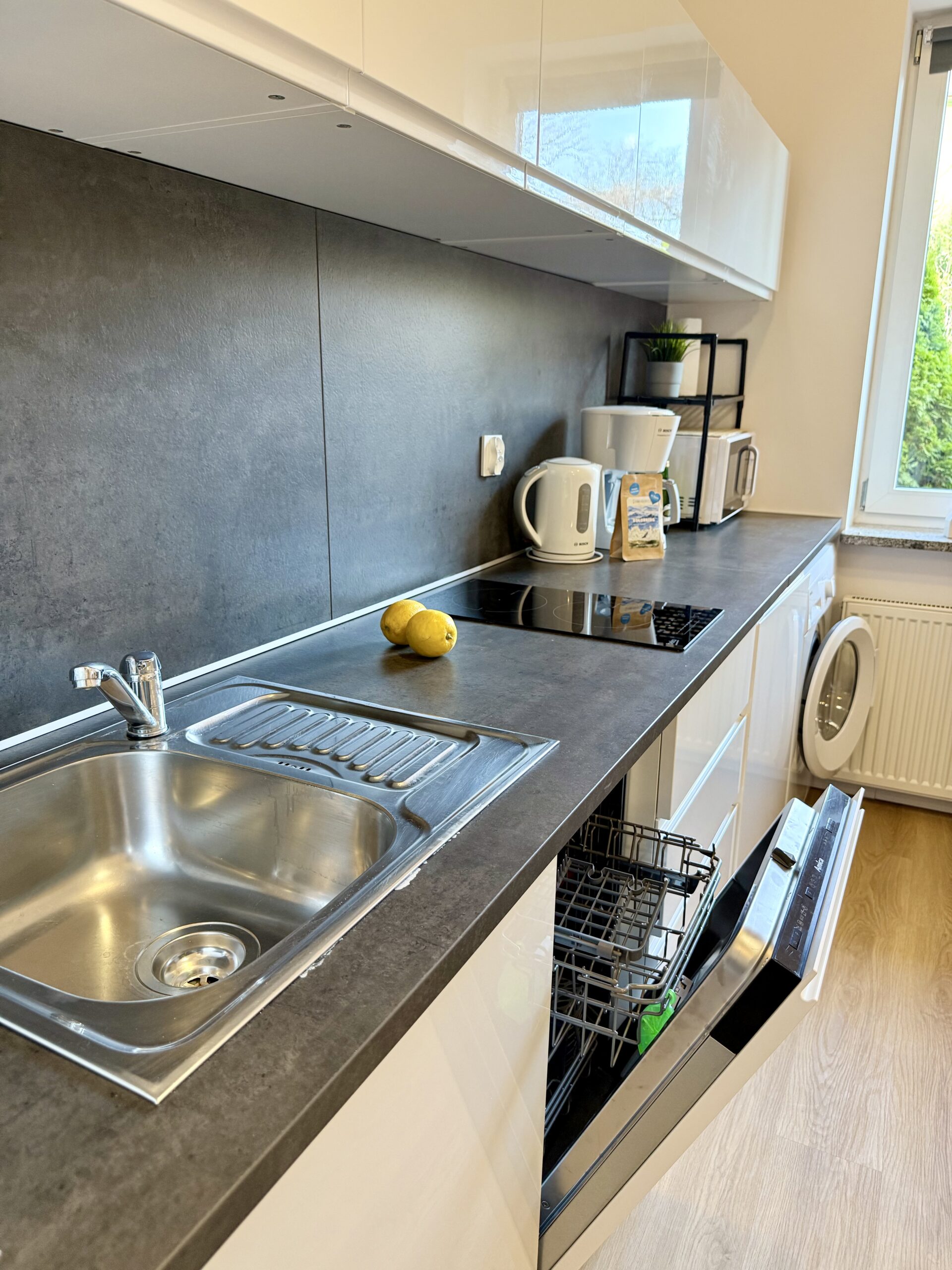 W apartamencie znajduje się część wypoczynkowa z telewizorem z płaskim ekranem, pralka oraz zestaw do parzenia kawy i herbaty. Drewniana podłoga nadaje wnętrzu przytulny charakter, a z okien roztacza się widok na cichą ulicę, co sprzyja spokojnemu wypoczynkowi.
