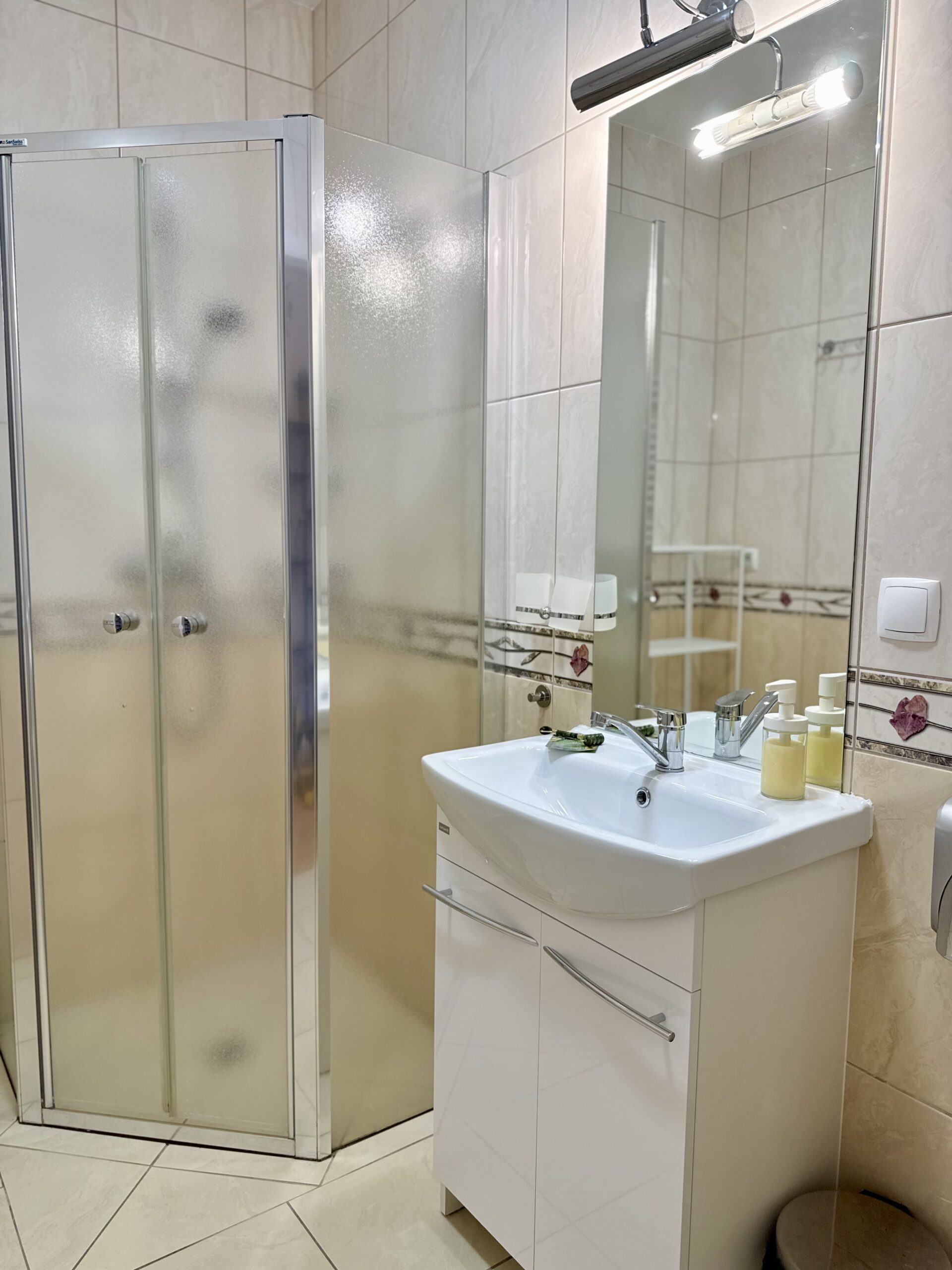 Apartament składa się z przestronnego salonu, oddzielnej sypialni oraz łazienki z kabiną prysznicową i suszarką do włosów. Do dyspozycji gości jest również dobrze wyposażony aneks kuchenny z płytą kuchenną, lodówką, zmywarką oraz niezbędnymi przyborami kuchennymi, dzięki czemu można wygodnie przygotować posiłki na miejscu.